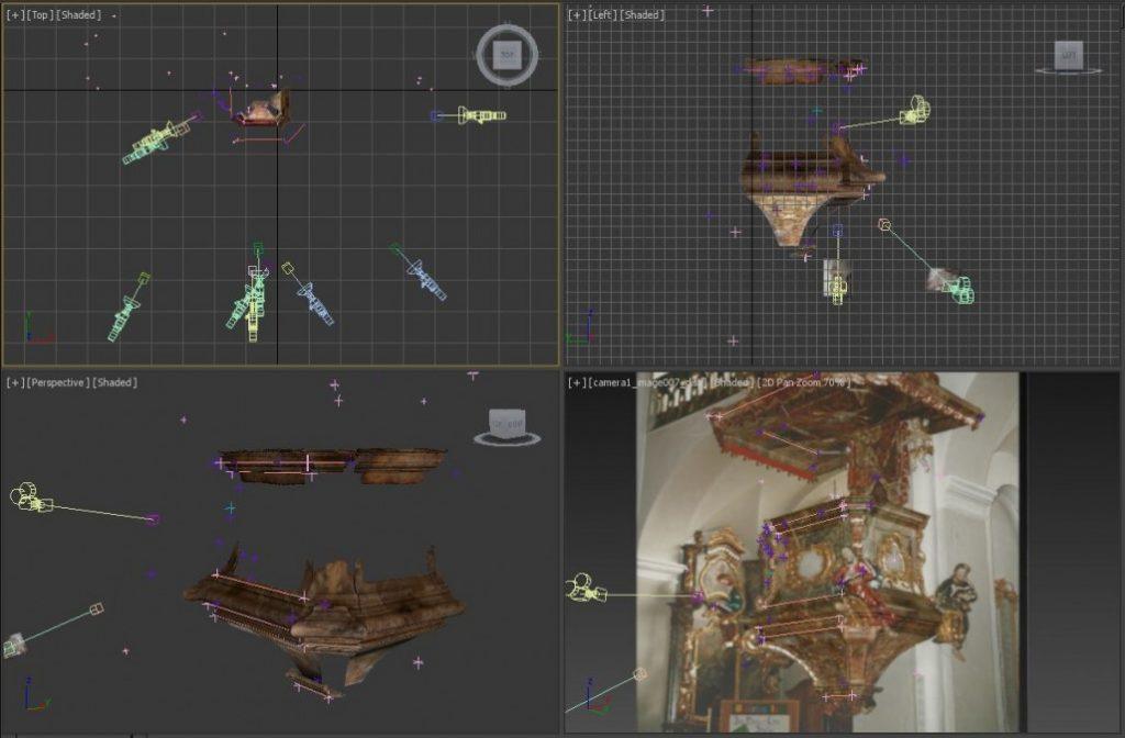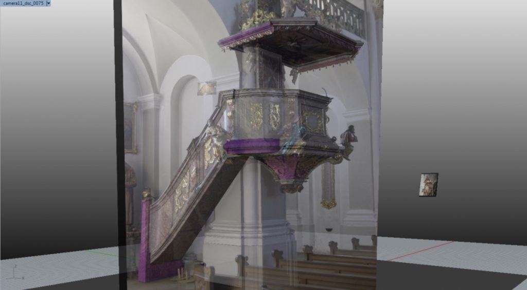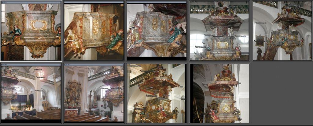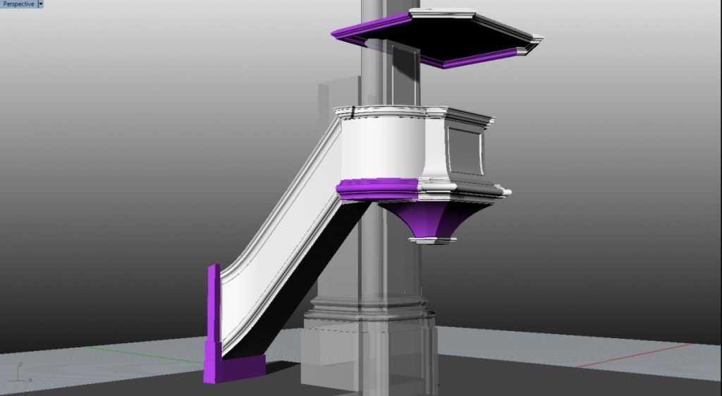 Die Aufgabe war nun, aus historischem Bildmaterial unter Einbeziehung der verbliebenen Einzelteile eine 3D-CAD-Rekonstruktion der Kanzel zu erzeugen, um diese nachbauen zu können.